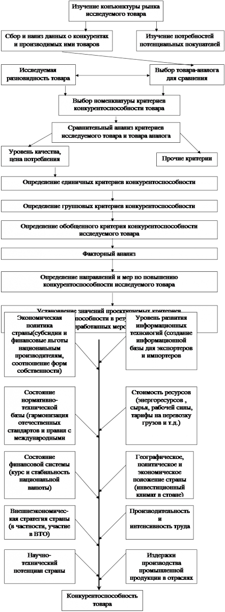 Конкурентоспособность товара – совокупность качественных и стоимостных характеристик товара ,обеспечивающая удовлетворение конкретной потребности покупателя. Конкурентно способным является тот товар, комплекс потребительских и стоимостных характеристик которого определяет его успех на рынке, т.е. способность данного товара быть обмененным на деньги в условиях широкого предложения к обмену других конкурирующих товаров-аналогов. Конкурентоспособный товар (КТ) – синтетический показатель, отражающий в себе итоги многих слагаемых : эффективности работы конструкторских бюро ; производственной деятельности предприятий, их смежников; работы внешнеэкономических организаций по реализации экспортных товаров на внешних рынках.(4)