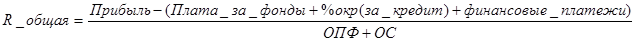 5. Общая рентабельность = Балансовая прибыль / Собственный капитал*100. Этот показатель характирезет деятельности предприятия, доходность предприятия от всех видов деятельности на 1 рубль собственного капитала. Применяют этот показатель при анализе оборотного капитала. Этим капиталов может характеризоваться удельный вес в общей величине активов. Это соотношение заемного капитала и величины собственного капитала.