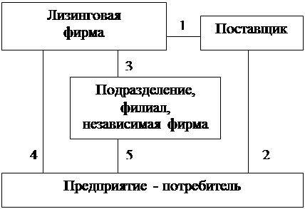 Рис.3. Схема организации лизинга, предполагающая делегирование части функций лизингодателя специализированным подразделениям, филиалам или другим фирмам.