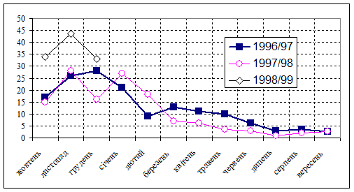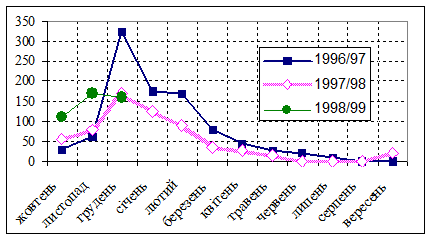 Зараз у тому, що зниження світових цін на зернові затягнеться ще на якийсь час, уже ніхто не має сумніву. Навіть аналіз біржових ф’ючерсів підтверджує, що пік росту цін прийшовся на листопад-грудень 1998 р., після чого проявилась знижувальна тенденція цін. Незважаючи на такі фундаментальні зміни в ринкових чинниках, як зниження виробництва пшениці та зростання споживання зерна у світі, вирішальний вплив на ринок продовжує (і буде продовжувати) мати світова фінансова криза. Ми пам’ятаємо, що початок падіння світових цін на зерно прийшовся на розвиток фінансової кризи в країнах Південно-Східної Азії наприкінці літа 1997р.