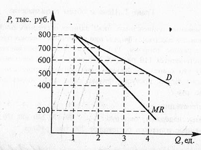 Рис. 1. Цена и предельный доход фирмы-монополиста: D – спрос; MR – предельный доход.