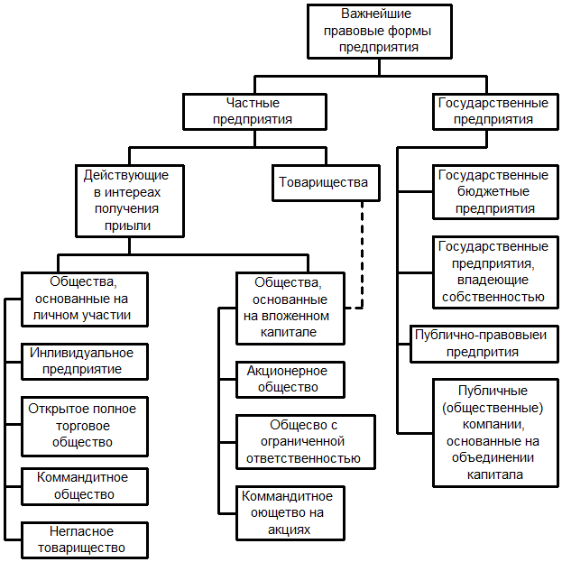 Важнейшие правовые формы предприятий в Германии приведены на схеме 3.1. Они различаются следующими представленными на ней особенностями.