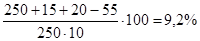 Первоначальная стоимость основных фондов составляет 250 тыс. руб., расходы на демонтаж и реализацию - 15 тыс. руб., расходы на модернизацию - 20 тыс. руб., остаточная стоимость равна 55 тыс. руб. Нормативный срок службы 10 лет. Норма амортизационных отчислений составит :