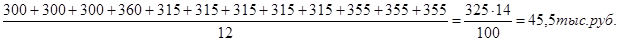 Основные фонды на начало года оценивались в 300 тыс. руб. В марте приобретены основные фонды на 60 тыс. руб., в апреле выбыло основных фондов на 45 тыс. руб. , в сентябре выбыло основных фондов на 15 тыс. руб. и приобретено основных фондов на 55 тыс. руб. , норма амортизационных отчислений 14%. Годовая сумма амортизации составит :