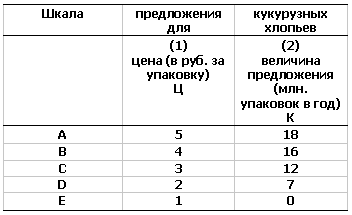 Таб 3. Шкала предложения показывает зависимость между величиной предложения и ценой