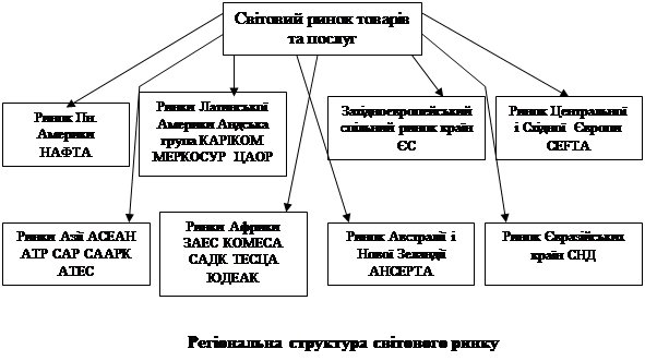 Згідно з регіональною структурою світового ринку розрізняють ринки окремих країн або їх угруповань.
