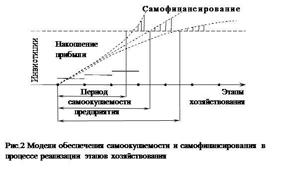 Цель любого предприятия достичь возможности самофинансирования (рис.2). При наступлении периода самоокупаемости предприятия, происходит накопление прибыли. У каждого предприятия самофинансирование происходит в разные сроки, стремительно, плавно или замедленно. По мере того как происходит расчет с инвесторами, кредиторами и потребителями [3, 71].