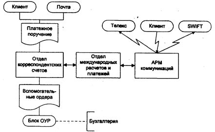 Второй способ наряду с ведением бухгалтерского учета по всем участкам позволяет получать оперативную информацию о текущем состоянии дел на предприятии. При таком способе обработки учетных данных удаленные АРМ, находящиеся на первом уровне (первичный учет), связаны с АРМ второго уровня (управленческий учет) электронной почтой через модемы. АРМ второго и третьего (финансовый учет) уровней взаимодействуют в сети через каналы связи. Единицей обмена данными между АРМ служит файл, состоящий из множества проводок. В процессе такого обмена результирующие файлы обновляются непрерывно по мере совершения хозяйственных операций. Таким образом, каждый уровень предусматривает переработку исходной информации , получение результирующих данных и в автоматизированном режиме передачу их на более высокий уровень.