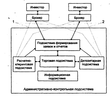 Административно-контрольная подсистема. Одна из причин появления организованного рынка - стремление его участников снизить риск при заключении сделок. Таким образом, основная функция административно-контрольной подсистемы заключается в "надзоре" за деятельностью всех подсистем биржи и деятельностью участников биржевого процесса (брокеров). На NYSE "подозрительные" сделки выявляет электронная система мониторинга Stock Watch. По отобранным сделкам запрашивается информация у участников торгов, анализируется возможность получения ими "закрытой" информации. Кроме того, функцией административной подсистемы является и "настройка" подсистем и персонала биржи на определенный биржевой процесс.