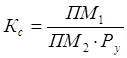 где Кс — коэффициент сопряженности; M1 и М2 — мощность ведущих цехов и участков, ед.; Ру —удельный расход продукции первой операции (цеха, участка) для выработки продукции второй, шт., т, и т.п.