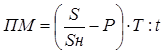 Несколько иное назначение имеет уже ранее упомянутый мной коэффициент использования производственной мощности (Ки ). Он характеризует уровень использования действующей производственной мощности, которая по своей величине может значительно отличаться от проектной. В свою очередь производственная мощность делится на определенные виды, каждый из которых имеет свое различное значение при решении вопросов планирования и организации производства. Поэтому уровень использования разных видов мощностей необходимо рассматривать отдельно. Так, прежде всего следует оценить уровень использования принятой плановой, среднегодовой и фактической производственной мощности. Коэффициент использования каждой из них можно получить путем отношения планового или фактического объема валовой, товарной, реализованной, чистой продукции (В ) к соответствующему виду производственной мощности (ПМ ).