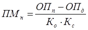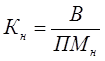 Важное значение для характеристики использования производственной мощности предприятия имеет анализ уровня использования производственных мощностей отдельных его подразделений. По результатам проведения этого анализа можно судить о правильности выбора ведущего звена, по которому принята мощность завода, и о величине резервов увеличения выпуска продукции отдельными цехами. Весьма важным следует считать определение уровня использования средней расчетной или нормативной величины производственной мощности. Для этой цели применяется коэффициент использования нормативной величины мощности (Кн ), величина которого определяется из такого соотношения: