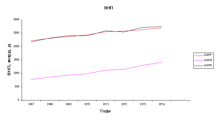 2.1. Расчёт показателей системы национальных счетов на базе имеющейся статистики и анализ складывающейся экономической ситуации в США за период 1967 – 1974 гг.