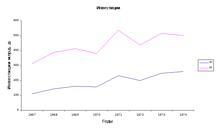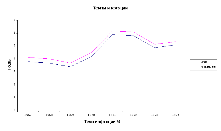 На рис. 2.1.1 представлены показатели, характеризующие экономическую ситуацию в США за период с 1967 по 1974 гг.