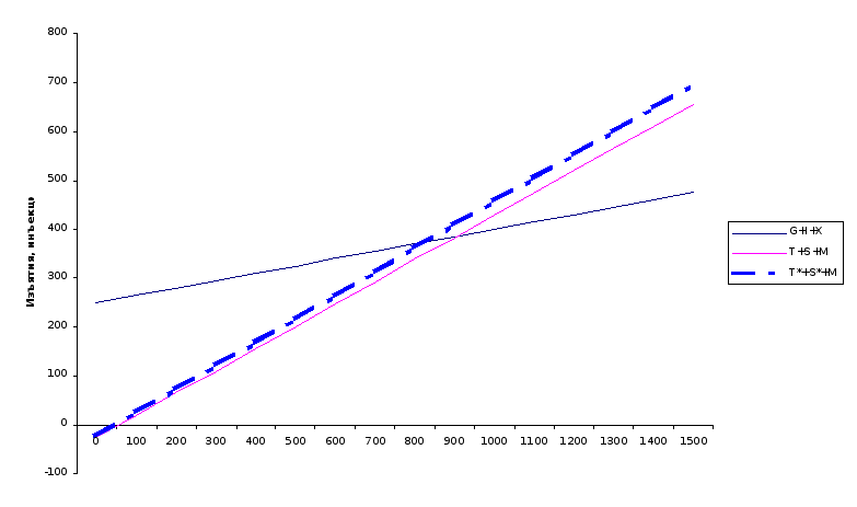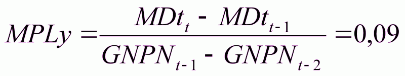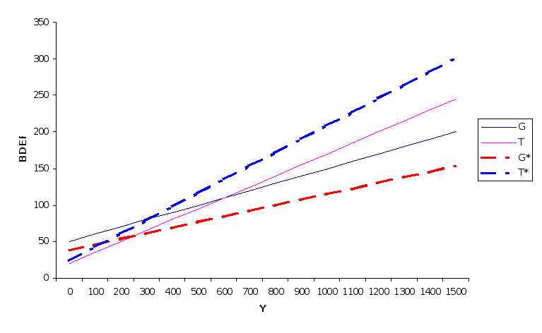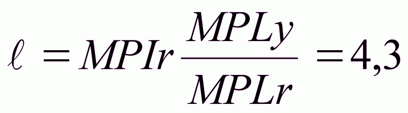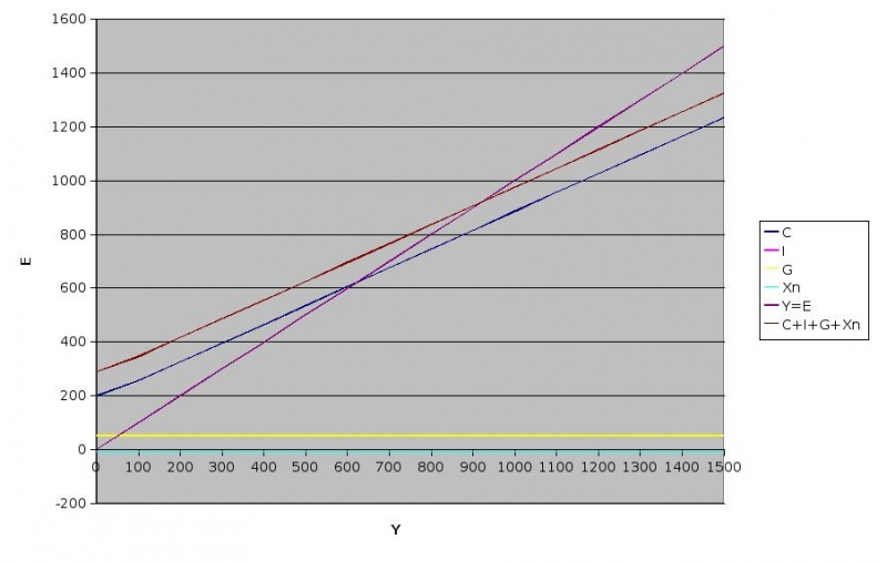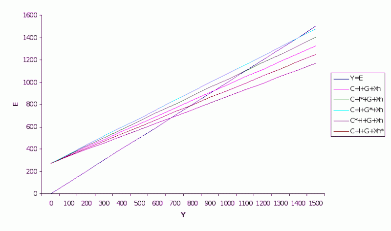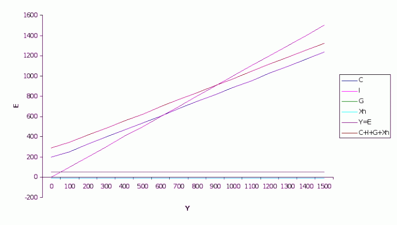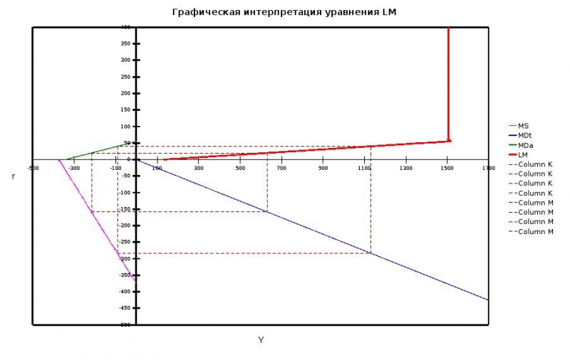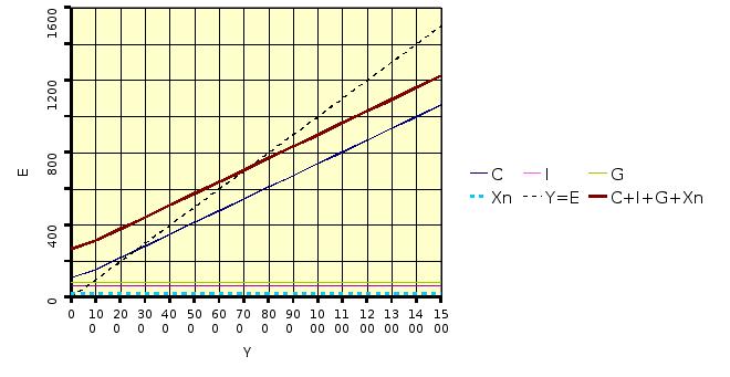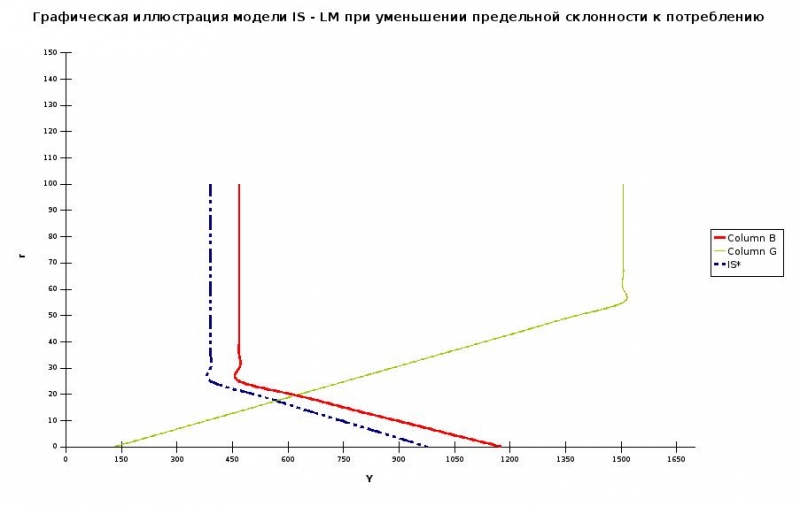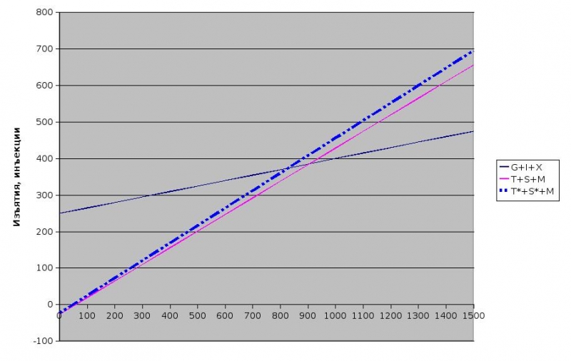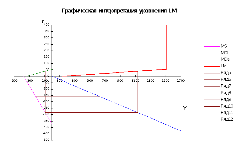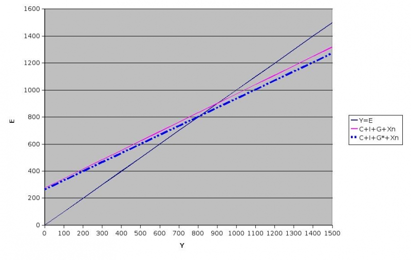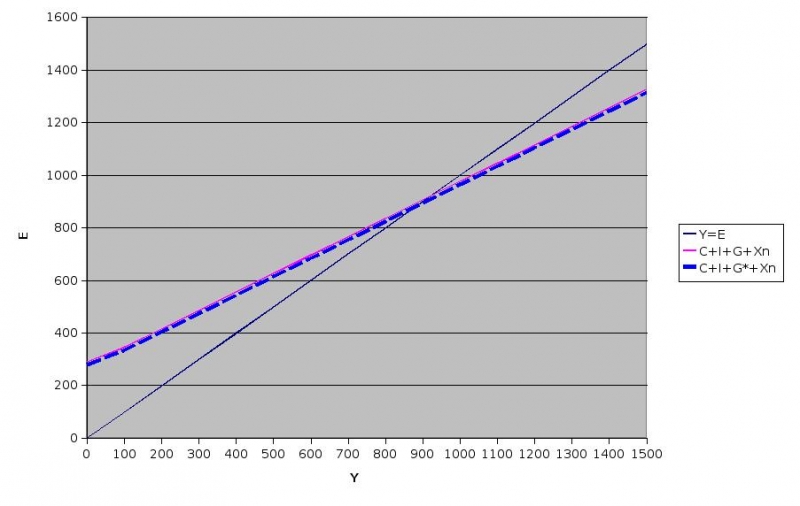 Поскольку Ка+ℓ=1,2704>1, нарушенное равновесие в экономике больше не восстановится, и график развития дальнейших событий будет выглядеть так: