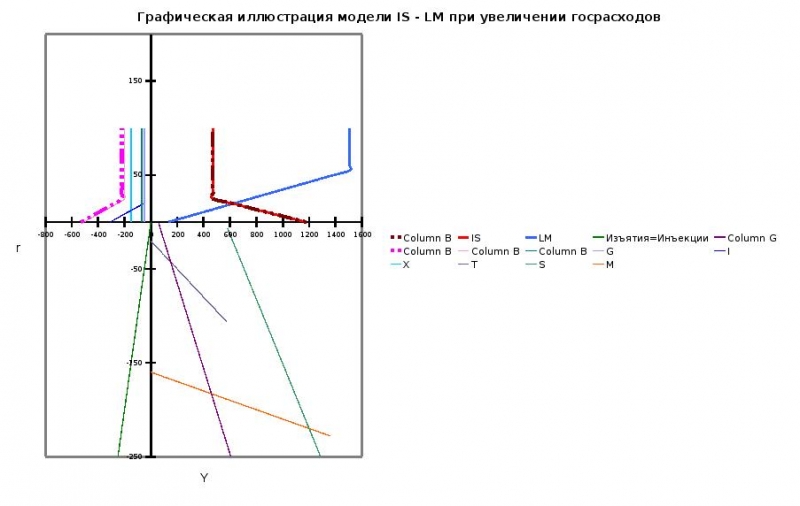 Таким образом, экономическая ситуация, рассматриваемая с позиций модели Самуэльсона-Хикса, и представляющая собой рынок товаров и услуг, на котором действуют только два рыночных субъекта (фирмы и домашние хозяйства), при нарушении существующего равновесия развивается по сценарию, не имеющему затухающий характер. Стабилизация не наступит . В случае дополнения данной модели денежным рынком (модель Тевеса) нарушенное равновесие, как было показано выше, больше не восстановится.