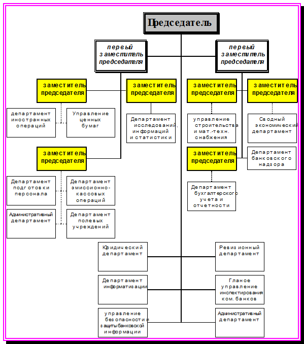 Будучи по размерам своих общих активов самым крупным банком мира, имея развитую систему территориальных учреждений, охватывающих всю страну(в 1983 г. их число доходило до четырех с половиной тысяч[13] ), Госбанк представлял собой единую централизованную систему, непосредственно подчиненную Совету Министров СССР.