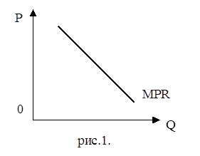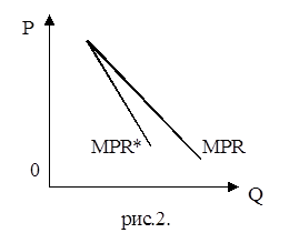 При несовершенной конкуренции (монополия, олигополия, монополистическая конкуренция) дополнительная выручка (MR) оказывается меньше рыночной цены единицы продукта (Pх ), и потому в этих условиях доход от реализации предельного продукта меньше его стоимости MPR* < MP´MR. Дополнительный доход от реализации дополнительного продукта будет меньше его стоимости, следовательно, линия MPR* пройдет ниже линии MPR (рис.2.).