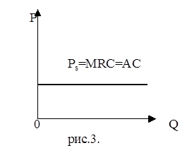 На величину предельных издержек ресурса влияют цены предложения. На совершенно конкурентном рынке факторов производства цена ресурса будет постоянной, так как фирмы-продавцы или домашние хозяйства не влияют на цены предложения, поскольку они формируются рынком. Все единицы ресурса фирма может закупать по одной цене. Поэтому на графике (рис.3.) линия MRC будет прямой, параллельной оси абсцисс. Для фирмы - покупателя кривая предложения Ps - это кривая ее предельных расходов MRC. Она будет совпадать с кривой средних расходов АС.