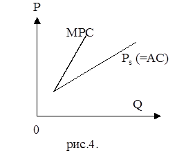 Если же ресурсный рынок является рынком несовершенной конкуренции (монопсоническим, олигопсоническим), то есть если на таком рынке присутствует один или, в крайнем случае, всего лишь несколько покупателей, то каждую дополнительную единицу ресурсов фирма-покупатель сможет приобрести по более высокой цене (кривая предложения Ps , кривая средних затрат АС, линия предельных расходов будут иметь положительный наклон (рис.4.)).