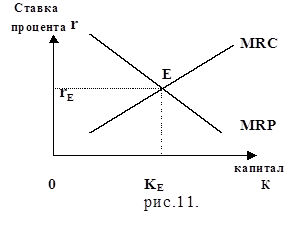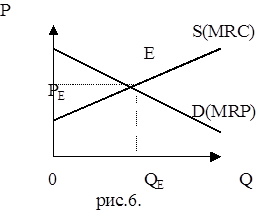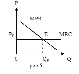 На рис.5. видно, что равенство MRP и MRC достигается в точке Е, чему соответствует объем ресурса QE .