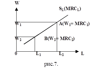 В экономическом смысле кривая предложения труда SL - кривая предельных издержек труда MRCL .