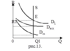 Земля используется как в сельскохозяйственных, так и в несельскохозяйственных целях, что обусловливает существование двух видов спроса на землю: Dнсх - сельскохозяйственный спрос, Dсх - несельскохозяйственный спрос. Совокупный спрос на землю DL будет представлять собой сумму двух указанных видов спроса: