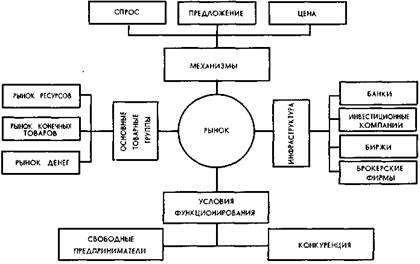 Первую попытку дать научное определение рынка сделал французский экономист О. Курно. По его мнению, этот термин обозначает "любой район, на котором взаимоотношения покупателей и продавцов свободные, поэтому цены на одни и те же товары имеют тенденцию легко и быстро выравниваться". Английский экономист А. Маршалл утверждал, что "чем совершенее рынок, тем более сильной является тенденция к тому, чтобы во всех его пунктах в одно и тоже время платили за одну и туже вещь одинаковую цену". В учебнике "Экономикс" рынок рассматривается как "институт или механизм, который сводит покупателей (представителей спроса) и продавцов (поставщиков) отдельных товаров и услуг".