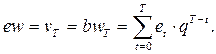 Суммарная будущая стоимость (T+1) платежа за период (0,T), приведенная к концу последнего T-го периода интервала (0,T), носит название конечной стоимости имущества за интервал (0,T) или конечной стоимости (ew) и рассчитывается по следующей формуле: