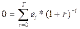 Процентная ставка, при которой капитализированная текущая стоимость платежного ряда принимает значение, равное 0, называется внутренней процентной ставкой этого ряда и обозначается через r. Она определяется из уравнения: