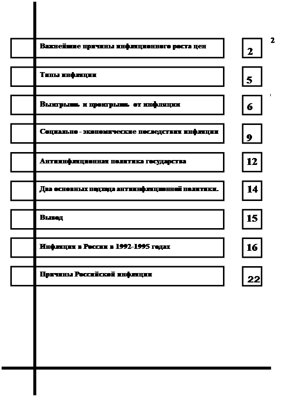 Краткое описание работы: Сстр. № Содержание Важнейшие причины инфляционного роста цен Типы инфляции Выигрышь и проигрышь от инфляции Социально - экономические последствия инфляции
