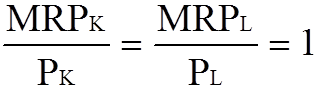 Де - відповідно граничні продукти капіталу та праці, а - ціни одиниці капіталу та праці.
