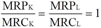 Оскільки використання додаткової одиниці капіталу і труда дає один і той же MR, то рівність 3.1.2 рівнозначна слідуючому: