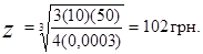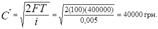 S - 500 единиц в месяц Р = 4 грн за заказ С = 4 грн за единицу.