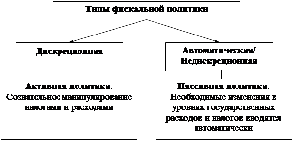 Под дискреционной фискальной политикой понимается сознательное манипулирование налогами и правительственными расходами с целью изменения реального объема национального производства и занятости, контроля над инфляцией и ускорения экономического роста.