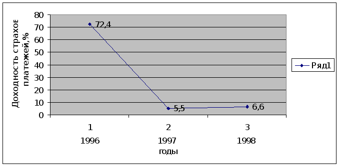 Данные Таблиц 2.27-2.30 свидетельствуют о том, что в ходе реализации инвестиционного проекта № 1 в 1999-2001г.г. компания страхования жизни «Новый Днепр» планирует с помощью дополнительно привлеченных средств (50 тыс.грн.) в виде взносов учредителей в уставный фонд обеспечить расширение количества клиентов-страхователей, а соответственно и общей суммы страховых платежей с 340,29 тыс.грн. в 2000 году до 642,95 тыс.грн. в 2001 году. То есть компания планирует увеличить поступления в виде страховых платежей почти в 2 раза. Соответственно увеличатся и расходы компании, связанные с выплатами возмещения по заключенным договорам страхования и ведением дела. В результате рентабельность страховой деятельности планируется увеличить с 8,4% в 1999 году до 10,3% в 2000 и 13,9% в 2001. Это означает, что рост рентабельности деятельности АСК «Новый Днепр» по страхованию жизни будет происходить более медленными темпами, чем увеличение общей суммы поступлений в виде страховых платежей (рис.2.16).
