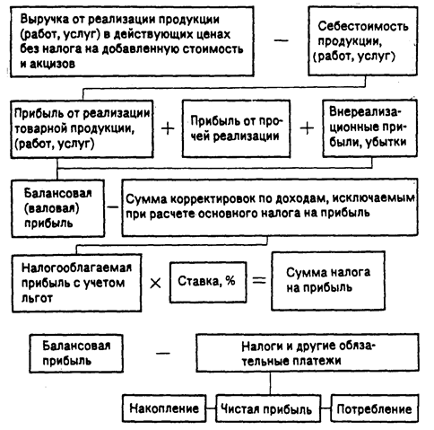 При рассмотрении прибыли как конечного финансового результата хозяйственной деятельности следует иметь в виду, что не вся получаемая прибыль остается предприятию, так как подвергается обложению налогом. Для исчисления облагаемой налогом прибыли валовая прибыль увеличивается на сумму превышения расходов по оплате труда работников предприятия, занятых в основной деятельности, в составе себестоимости продукции (работ, услуг) по сравнению с их нормативной величиной. Указанное увеличение (уменьшение) валовой (балансовой) прибыли при исчислении облагаемой прибыли не производится: по совместным предприятиям, созданным на территории Российской Федерации с участием российских юридических лиц и иностранных юридических лиц и граждан, если доля иностранного участия в уставном фонде превышает 30%, по международным неправительственным организациям (объединениям), а также международным объединениям, осуществляющим хозяйственную деятельность.