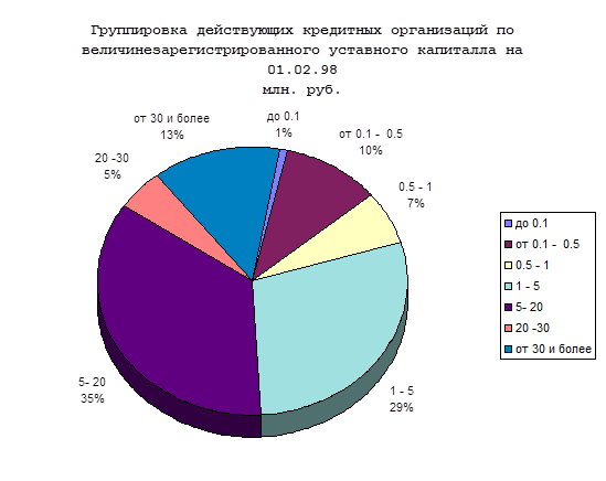 Финансовое состояние банков в 1997 году характеризовалось ростом удельного веса финансово устойчивых банков (банки без признаков финансовых затруднений и банки, имеющие отдельные недостатки в деятельности) и снижением удельного веса финансово неустойчивых банков (банки, испытывающие серьезные финансовые трудности или находящиеся в критическом финансовом положении) в общем количестве действующих кредитных организаций. По состоянию на 1.01.98 66% действующих банков относятся к категории финансово стабильных, в том числе 39% составляет группа банков без признаков финансовых затруднений, и 27% - банков имеющих отдельные недостатки в деятельности (на 1.01.97 – 54,3%, 42%, 12,3% соответственно). По состоянию на 1.01.98 84,7% от совокупных активов банковской системы сконцентрировано в финансово устойчивых банках. Банки, относящиеся к категории проблемных, составляют на 1.01.98 32,4% от общего количества действующих кредитных организаций. Среди банков, относящихся к категории проблемных, значительна доля банков (22,7% от действующих), находящихся в критическом финансовом положении. Однако активы этой группы банков на 1.01.98 составляют всего 2,9% от совокупных активов банковской системы.