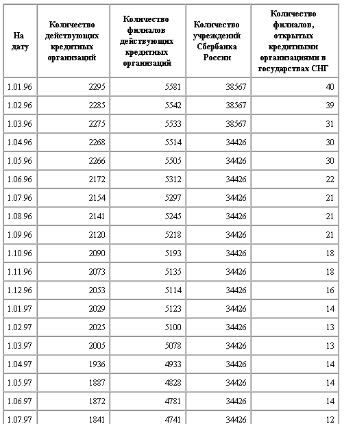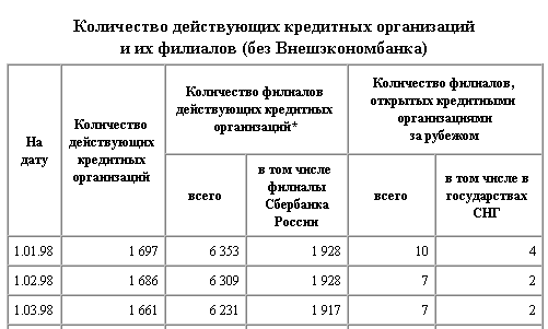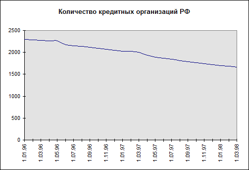 На фоне консолидации капитала и активов банковской системы России, снижения доходности банковских операций на рынках продолжается сокращение количества кредитных организаций. В 1997 году темпы сокращения действующих кредитных организаций (16,3%) возросли по сравнению с 1996 годом (11,6%).