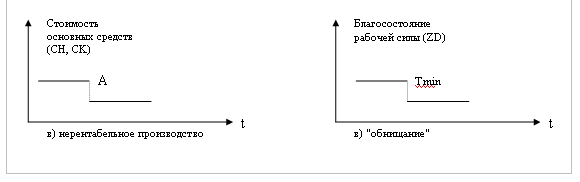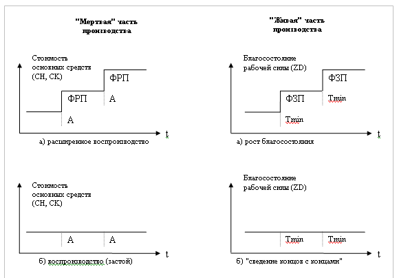 При формировании цены на товар учитываются как материальные затраты (см. рис.1), так и планируемый фонд заработной платы. Но, кроме этого, учитывается, как минимум, амортизация оборудования. Амортизация оборудования, как и прожиточный минимум, входящий в итоге в фонд заработной платы, позволяет поддерживать основные средства производства в равновесном состоянии. Если в цене продукции не учтены хотя бы амортизационные отчисления, то основные средства предприятия (машины, оборудование, здания и т.д.) постепенно, не обновляясь и не ремонтируясь, начнут терять свою стоимость, примут полу- или разрушенный вид (см. [4]). Говорят, что предприятие в этом случае стало нерентабельным. Если же амортизационные отчисления учитываются и, кроме того, формируется ФРП (фонд развития производства), то предприятие в том случае, если находит по сформированной цене сбыт продукции, становится не только рентабельным, но и процветающим. Это означает, что если есть возможность непрерывно формировать ФРП, то на предприятии существует расширенное воспроизводство (по Марксу).
