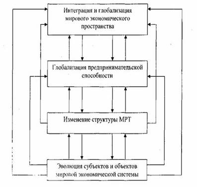 Как уже было отмечено выше, развитие предпринимательской способности в пределах международной хозяйственной системы выступает как результат усиливающихся тенденций глобализации и интеграции. В свою очередь, глобальный характер предпринимательской способности послужил причиной структурных сдвигов в МРТ.