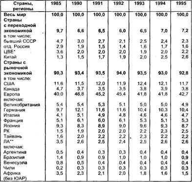 Так, удельный вес промышленно развитых стран в мировом экспорте колебался в последние двадцать лет в пределах 70-76%; доля государств развивающегося мира - в интервале 20-24%, а бывших социалистических стран - не превышала 6-10%.