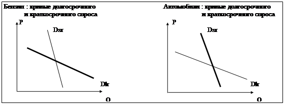 Пример: Резкое повышение цен на бензин, уменьшает количество его продаж в краткосрочном периоде, но это влияет на спрос на автомобили, который может изменяться только в долгосрочном периоде .