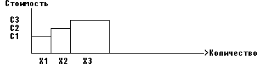 Способ определения стоимости ресурсов совпадает с определением стоимости произведенного продукта (п. 1): если Xi -количество используемого ресурса, а Ci - стоимость единицы этого ресурса, то мы получим член целевой функции, равный - CiXi. Здесь мы снова можем учесть в модели зависимость стоимости ресурса от его количества, как например на графике: