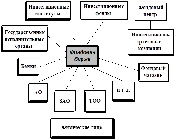 1. субьекты рынка: биржи, банки, инвестиционные фонды и компании.