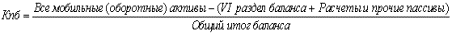 Коэффициент прогноза банкротства (Кпб) характеризует удельный вес чистых оборотных средств в сумме актива баланса. Он исчисляется по формуле: