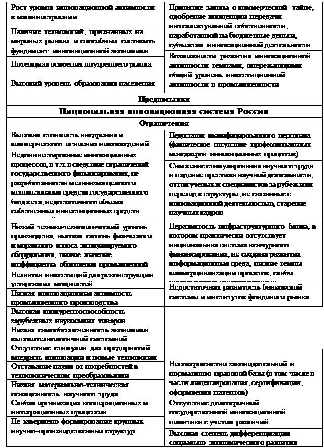 Рисунок 3 – Основные предпосылки и ограничения развития НИС России [5]