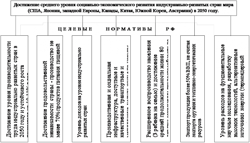 На более продолжительный срок, до 2050 года возможен, например, следующий предлагаемый вариант целевых стратегических нормативов экономического развития страны (рис.1)