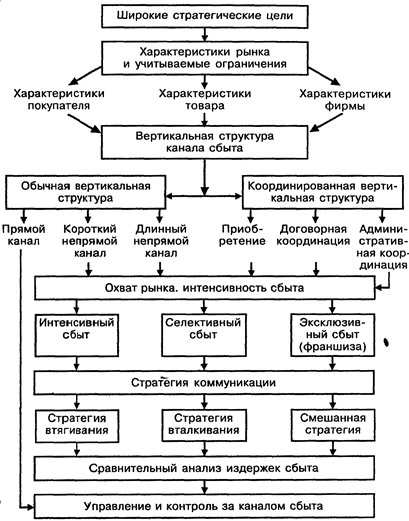 Одним из вопросов организации сбыта является анализ сбытовых издержек, определение торговых наценок, разработка мероприятии по повышению рентабельности работ по сбыту товаров и деятельности фирмы в целом. При анализе сбытовых издержек учитываются затраты на выполнение следующих функций транспорт реализация ассортимента, хранение, контакты, информация, управление продажами, прочие издержки. Следует иметь в виду, что длинный канал сбыта эффективен при малом объеме продаж, а короткий канал - при значительном. Конкретные зоны эффективности различных видов каналов сбыта определяются по конкретным товарам и рынкам, а тенденция показана на рис. 6.