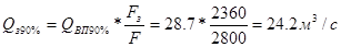 Тогда, среднегодовые расходы воды в створе водомерного поста при различной обеспеченности принимают значения: